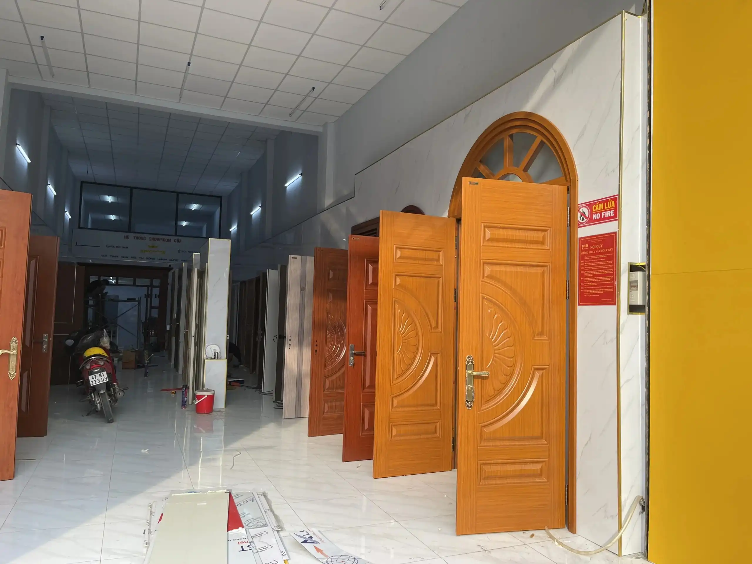 Cửa sẽ được gia công trực tiếp tại xưởng bằng máy móc công nghệ cao, đảm bảo từng chi tiết đạt độ chính xác và thẩm mỹ tối ưu. Sau đó, đội ngũ kỹ thuật tiến hành vận chuyển và lắp đặt tận nơi, theo đúng quy trình kỹ thuật, đảm bảo cửa hoạt động ổn định, chắc chắn và đạt tính thẩm mỹ cao cho công trình.